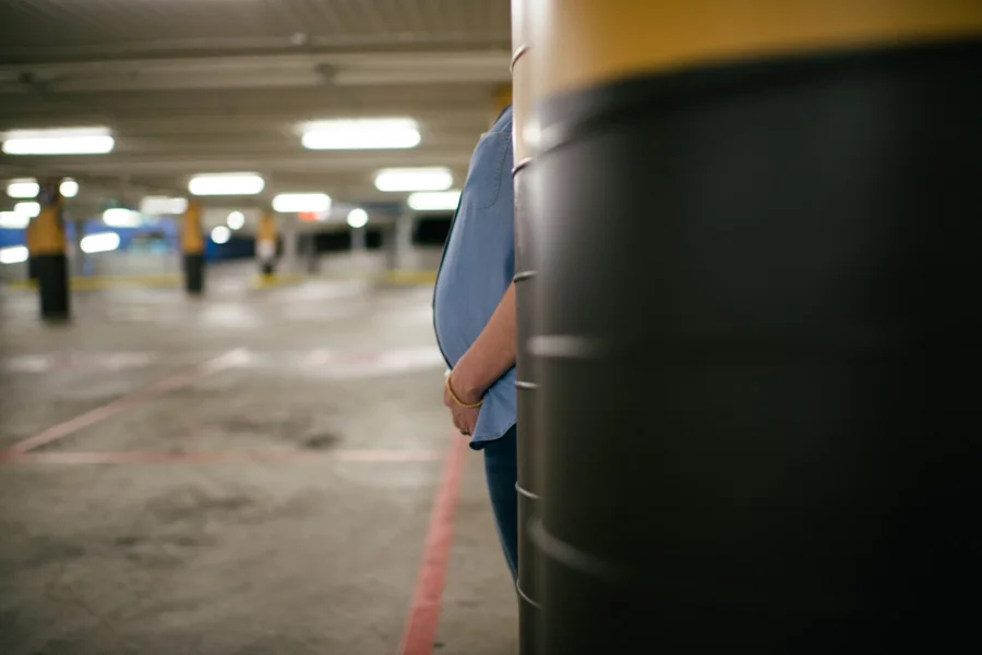 When she first mentioned it, instantly in my head I saw beautifully dark images with strips of early morning or late afternoon sunlight casting angled luminance through the carpark. Of course that was before bloody daylight savings kicked in. And I didn't count on all the fluorescent lighting either.